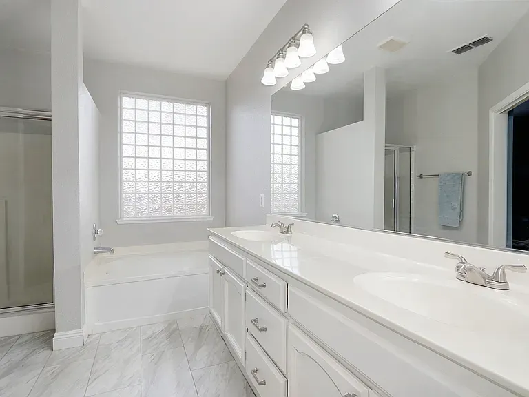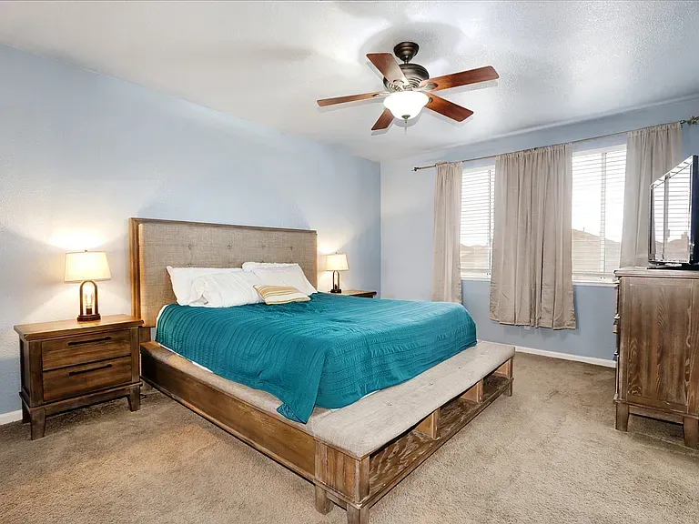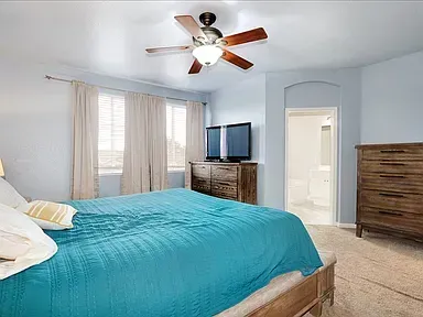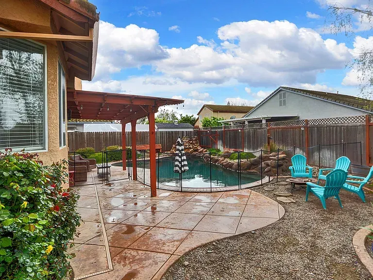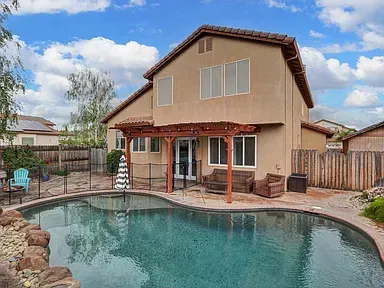Just in time for summer! Vacation in this backyard this summer with a pool that has two waterfalls, beautiful landscaping and situated on a corner lot. This home has 4 bedrooms and 2.5 baths and is just has under 2200 square feet of living space. Downstairs formal living room with dining area leads into the kitchen with plenty of storage, pantry and kitchen fridge. Step down family room with built in entertainment center is where everyone will be gathering when not in the backyard. Upstairs has the primary bedroom with en-suite bathroom. The additional three bedrooms and bath is also upstairs. In the garage the third stall has been converted into a bonus area that has several possibilities: a playroom, craft room, man cave or a home office. Downstairs laundry room with washer and dryer are included. Home is conveniently located to schools, shopping and easy assess to the freeway. Tenant pays all utilities, owner pays for landscaper, pool service and pest control. Renters insurance is required. Don't miss this opportunity!